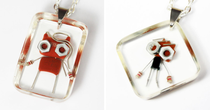 I try to keep electronic waste out of the environment by making these up-cycled characters, assembling the components and transform them into something more than just scrap.