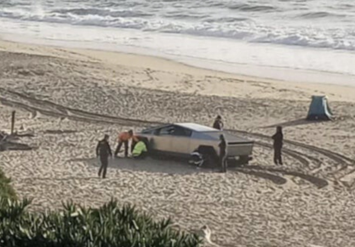 Saw This Idiot Who Got His Tesla Stuck At The Beach Today