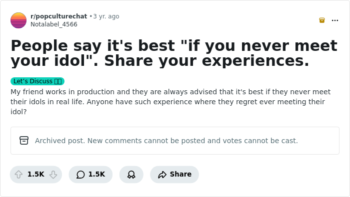 “People Say It’s Best ‘If You Never Meet Your Idol’: Share Your Experiences” (43 Stories)
