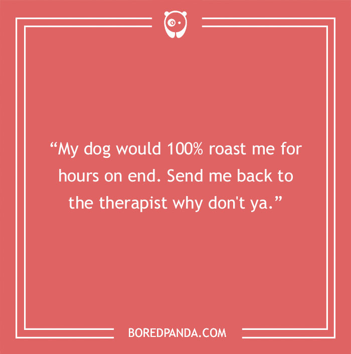 "My dog is so stupid, he would tell me all the dumb stuff he’s planning on doing before he does it. 'Oh, I see you accidentally left that candy bar on the counter, Mom. Don’t worry, I’ll eat that for you.'"