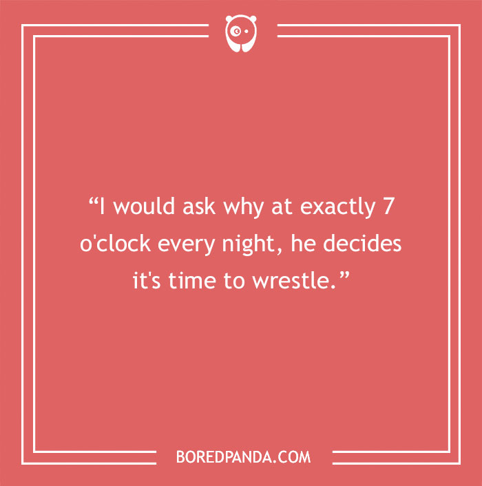"My dog would comment on all the little annoying things I do. He would point out all the hair that’s mine on the floor. Anytime I drag mud in the house he would watch at me and make me clean my feet off and tell me I have to go take a bath."