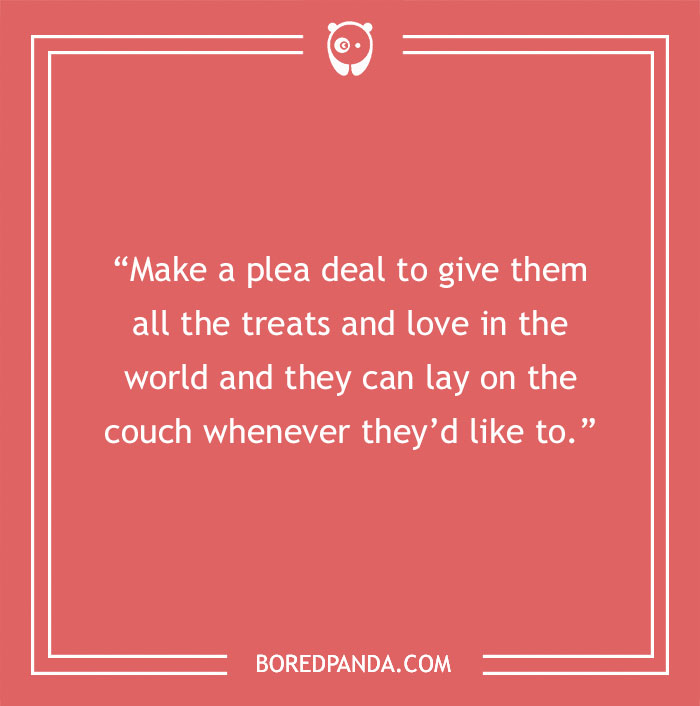 "Make a plea deal to give them all the treats and love in the world and they can lay on the couch whenever they’d like to."