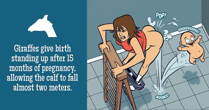 Ever wondered what would happen if humans gave birth like giraffes? No? How about seahorses? Still no? Well, illustrator Paul Westover has, and he's drawn the pictures to prove it.