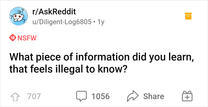 Of course, it’s just a joke; you shouldn’t worry about getting into legal trouble for knowing these, it just signifies how random or even weird some of these facts are. Since we don’t want to spoil anything, you just have to check them out for yourself (and don't forget to upvote!).