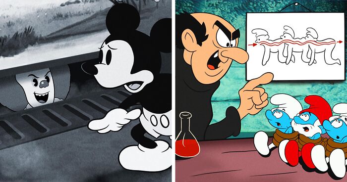 So, without further ado, we invite you to explore Mike’s newest works featuring the worlds of Mickey and Minnie, alongside beloved classics like The Berenstain Bears (or Berenstein, depending on which reality you are from), Winnie the Pooh, and The Smurfs.