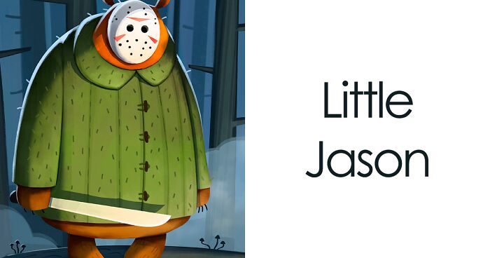 I love horror movies. I thought about a tribute to my favorite villains for a while. But I didn't want to do realism, it felt boring and I've seen that before. I like to create contrast in my works, emotional and visual. While thinking about the horror genre, I thought, what is the opposite of that? Well, children's books with happy animals. Hence the concept was done and it influenced the style and designs.