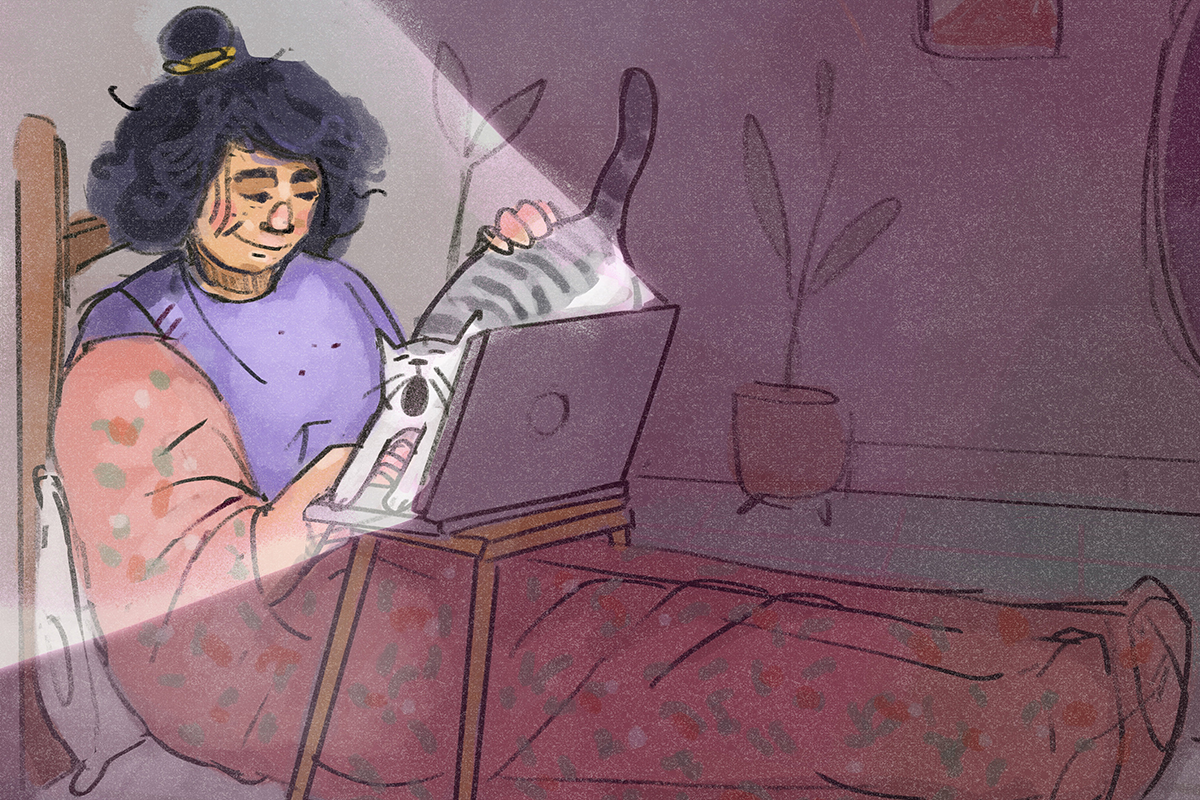 I started this series during the peak times of the pandemic. The illustrations revolve around the quarantine life of a cat and her human. The human is seen tending to a mundane life while stuck at home. She tries to break the patterns in her life through fun activities too. Her cat is an important factor to keep her happy through the days of solitude and is a partner in her little adventures at home. This I feel was for so many pet owners during the pandemic. Especially those who live alone.