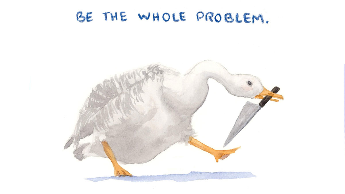 The artist shared that these images are meant to strike up a feeling of camaraderie and relatability with silly creatures immersed in the absurdity of everything with righteous anger, frustration, and love. “I just want to connect with people on a very emotional level, and sometimes a picture alone won’t do, and words alone won’t do, so I mash them together in the hopes of reaching out to people from all walks of life.”