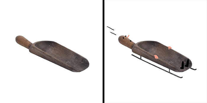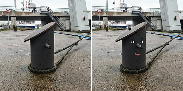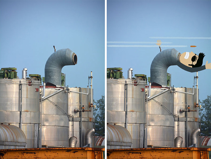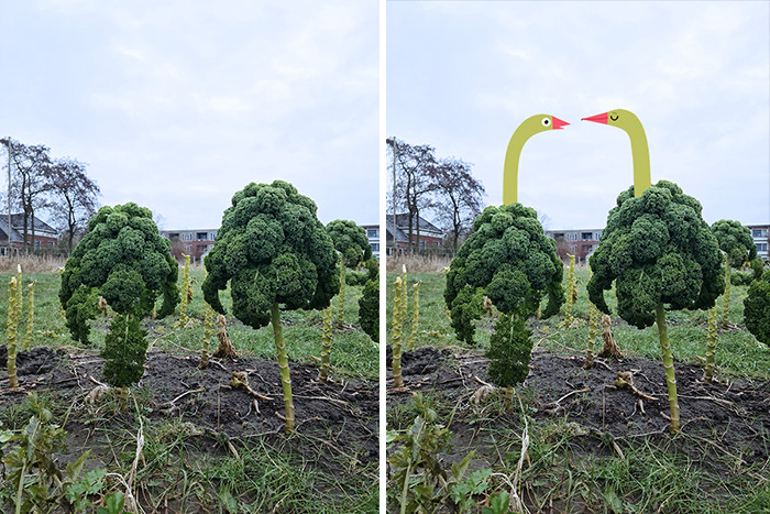On her website, the artist features both the seemingly uninteresting original image and her altered version. Basically, Tineke shows the difference between what the object is and how she sees it. This is how a stack of oranges turns into a crowd of cheering Holland sports fans. She even managed to turn her unusual art into a fun memory game for kids. And together with the Samsung France team, Tineke created a communications campaign called “Imaginary Safari” that shows life in Paris through a totally new perspective.