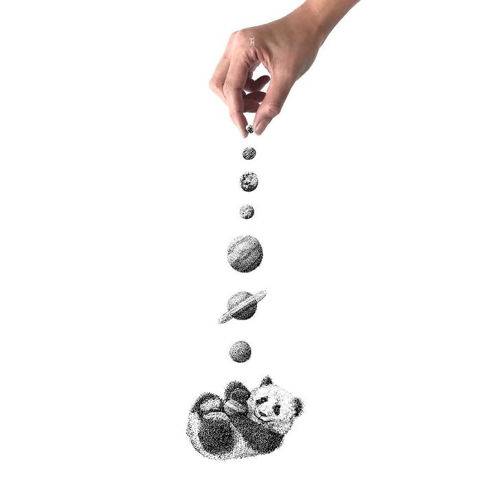 So lately, I’ve been falling in love with details more and more. Dot, dot, dot until the big picture emerges. I love to play with the light, so that’s why I’m staying with black and white. The reason why I’ve decided to dot animals is that I’m always looking for inner peace. I’m spending a lot of time on an artwork. And of course, I’m thinking about a lot of things while doing this. And I found out about myself that I feel more peace and happiness by dotting animals, because in nature, there is no good and evil. Everything is as it should be. It’s pure and it’s natural.