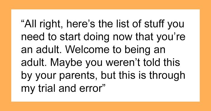 “All right, here’s the list of stuff you need to start doing now that you’re an adult. Welcome to being an adult. Maybe you weren’t told this by your parents, but this is through my trial and error.”