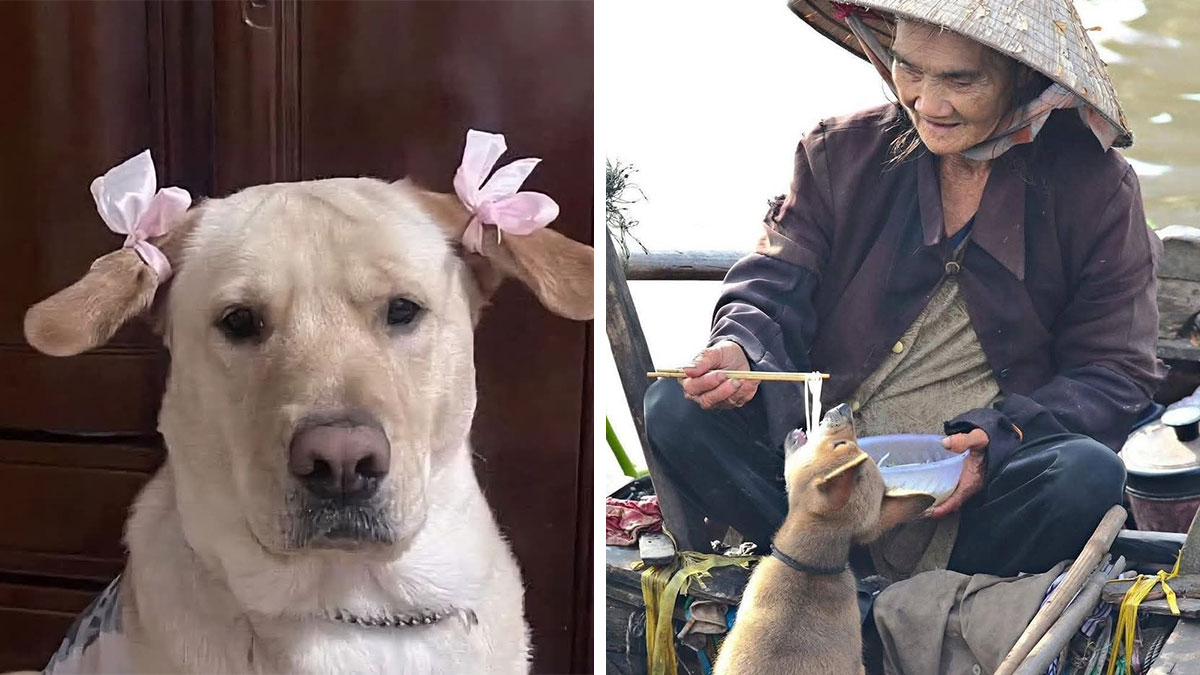 From a solemn dog wearing pink bows like it’s contemplating the meaning of life, to a puppy slurping noodles straight from chopsticks offered by a grinning elder on a boat, these photos show the perfect chaos of our shared world.