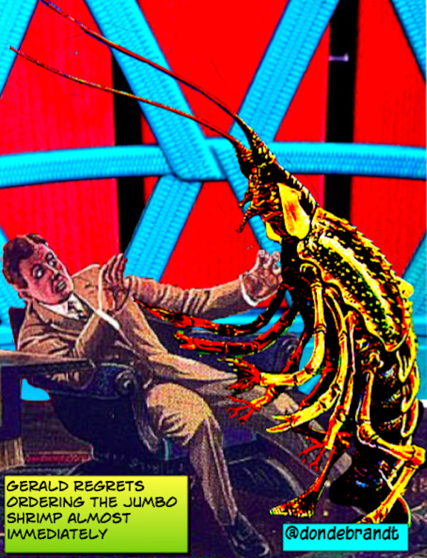 I’ve been making one-panel comics by taking old pulp magazine covers and adding digital backgrounds and absurd captions. If you find them funny, please share!