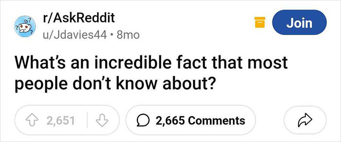 You can also start a discussion with fellow netizens in a matter of a couple of clicks, too, and that’s exactly what the redditor u/Jdavies44 did. They were curious to learn about interesting facts few people knew about so they asked fellow redditors to share them, and they discussed some rather fascinating things. If you’re curious to read about them, too, wait no longer and scroll down to find their answers on the list below.