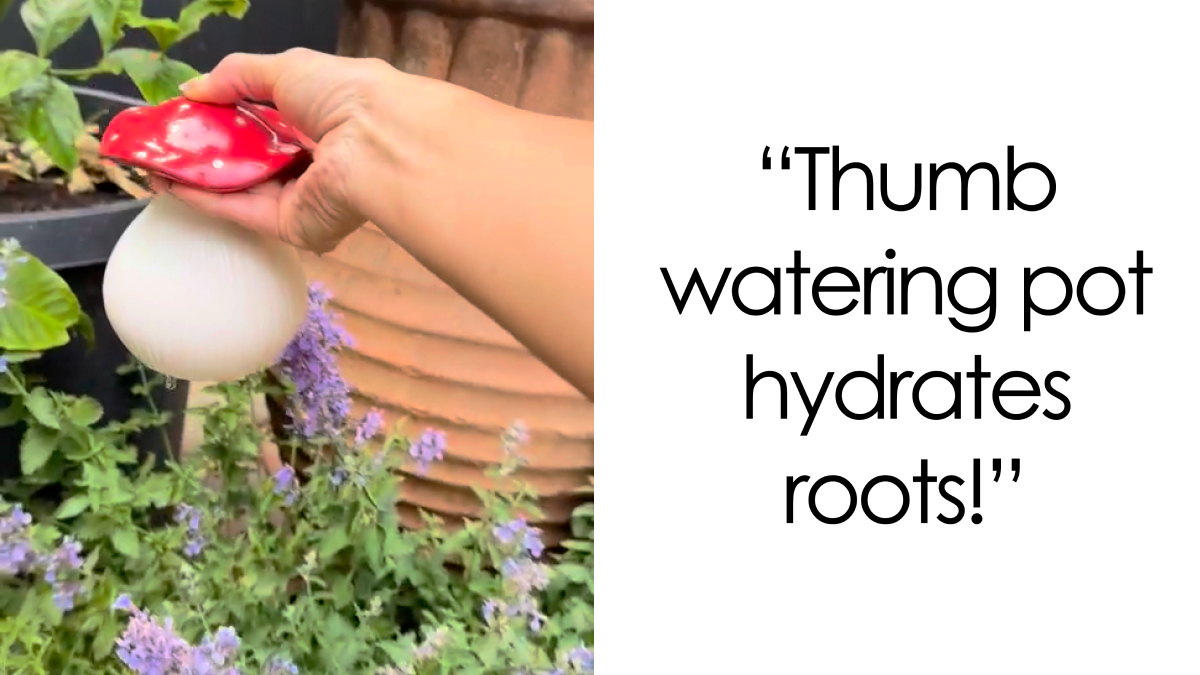 Watering Cans? They Are Getting A Total Makeover. Instead, Try Gently Caring Your Plants With This Thumb Watering Pot For Direct Root, And Not Leaf, Hydration