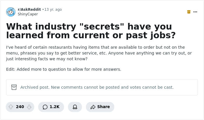 But if you haven’t signed an NDA or you stopped working in that sector years ago, it might be time to reveal these juicy secrets to the public. Redditors have been spilling the beans about information that is often kept under wraps in various industries, so we’ve gathered their most fascinating replies down below. From tips that might help you save money to information that may inspire you to boycott certain companies, enjoy scrolling through these insider secrets. And be sure to upvote the ones that you’d like everyone to know!