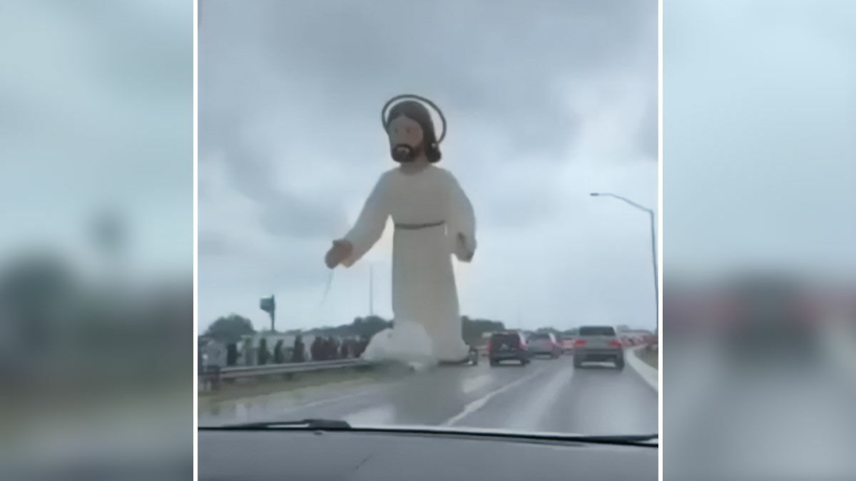 With Easter right around the corner, a viral video captured an inflatable Jesus balloon over a Brazilian highway.