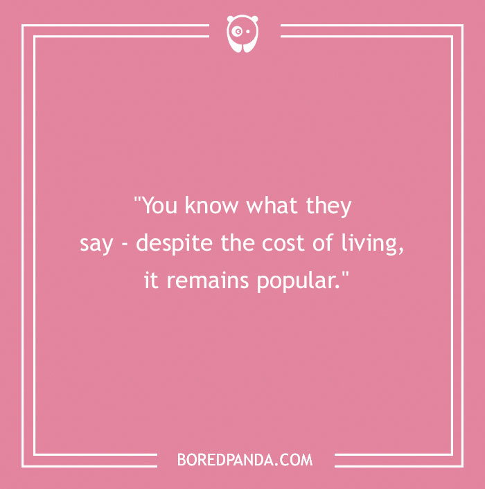 "You know what they say - despite the cost of living, it remains popular."