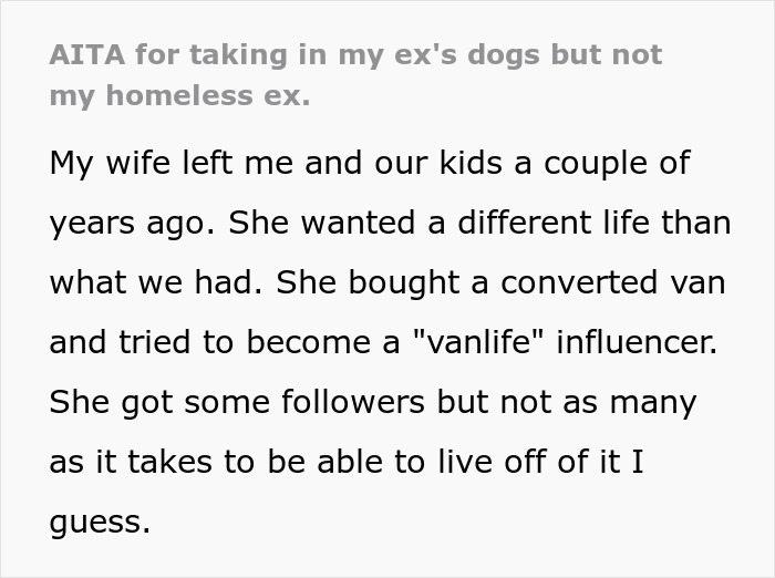 This parent’s ex-wife abandoned their family a few years ago to become a “vanlife” influencer