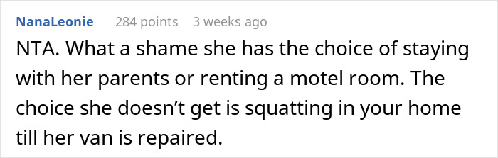 Now, she doesn’t understand why she can’t stay in her former home while her van is being repaired