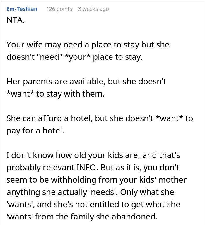 One woman even decided that it would be worth it to abandon her spouse and children to pursue a life on the road, but now, she might be realizing how many bridges she burned. Below, you’ll find a post that her ex recently shared on the “Am I the [Jerk]?” subreddit, detailing why they won’t allow her to stay in her former home.