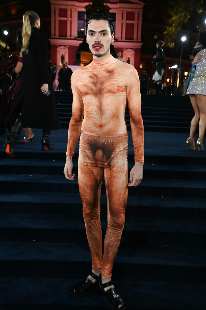 Lyas arrived at the soirée in a bodysuit that depicted a fully unclothed man.