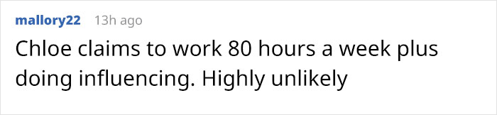 Chloe was reportedly disillusioned by the influencer lifestyle and had to take a 9-to-5 job in mental health to stay afloat.