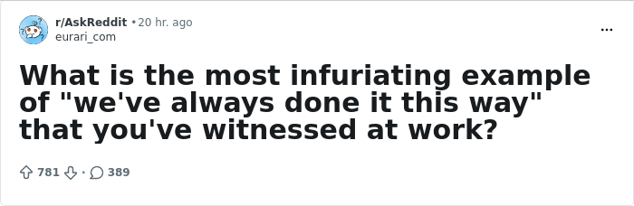Someone asked an online community, “What is the most infuriating example of ‘We’ve always done it this way.’ that you’ve witnessed at work?” and netizens were only too happy to share their wildest stories. Dive into this collection of the best.