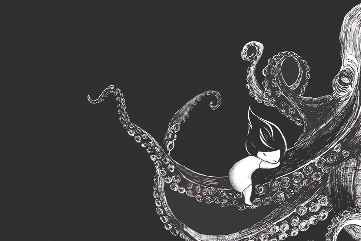 Then, whenever I was having an attack again, I started to draw. I drew what I feared and what gave me relief. I drew myself helping me!
