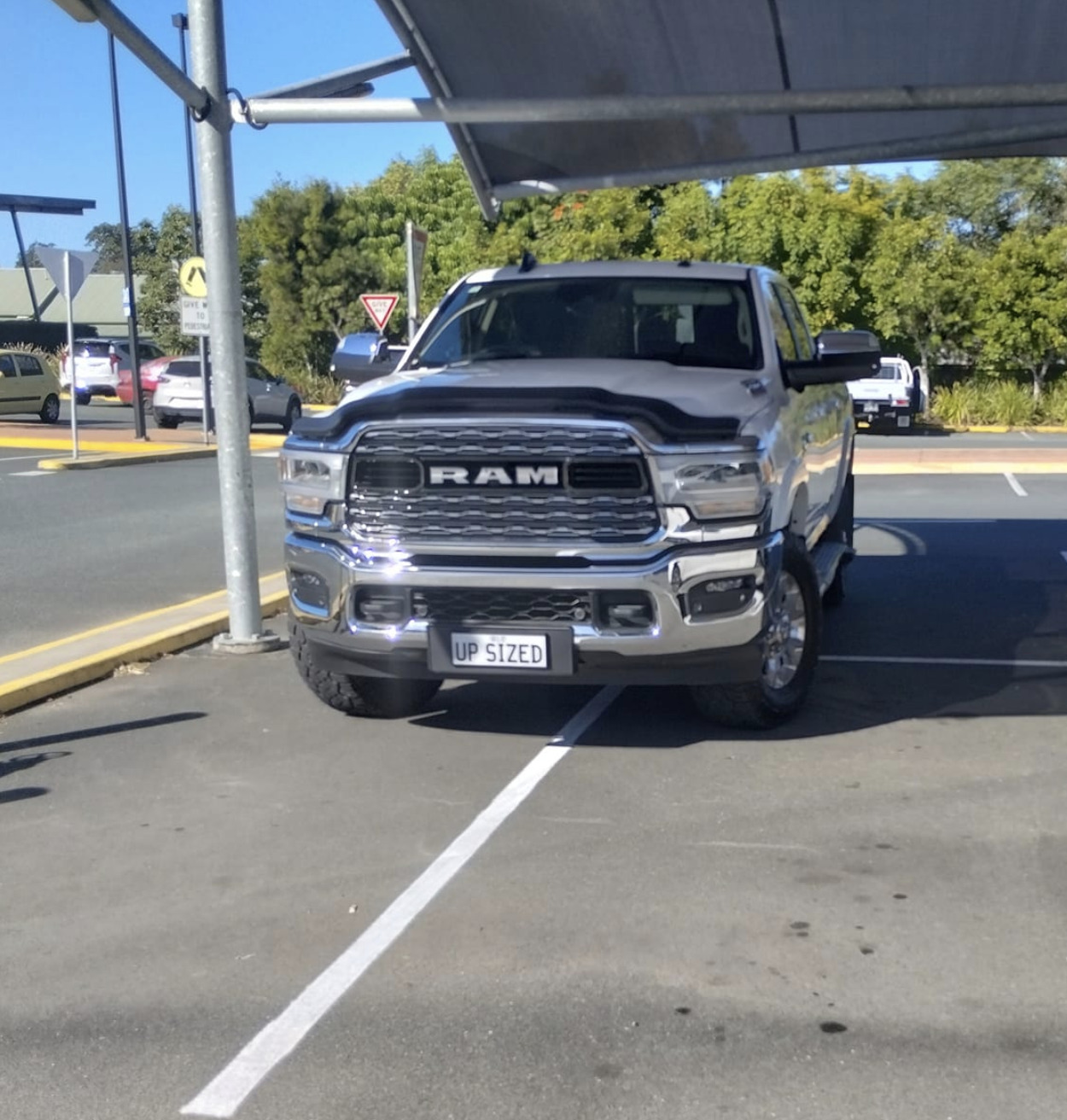 Yeah! This is a favourite photo of mine for this topic, someone took it in my hometown - it's taking up four parking spaces! I live in Australia, so it's not like you can't get anything apart from this, it's actually much harder to get big rams, just get a normal ute like everyone else if you need the extra space on the back.