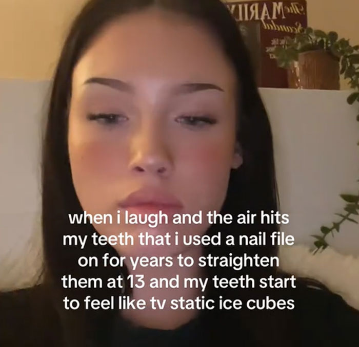 I scrubbed my front teeth so hard and overly brushed them for hours bc I thought it would make them white now I have an enamel of an old person.
