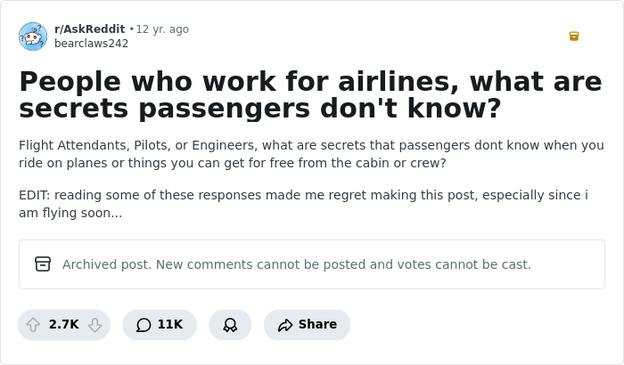 But beyond the familiar rituals of air travel lies a world most passengers never see. Luckily, across several Reddit threads, airline staff, pilots, and crew members have spilled some fascinating behind-the-scenes secrets about what really happens when we fly. So, if you’ve ever been curious about the hidden side of aviation, keep reading. There’s plenty of tea to go around.