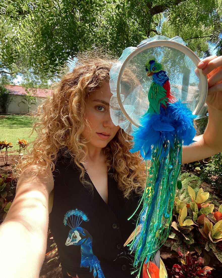 My embroidery journey began during the pandemic. Living in Mexico and spending hours in my garden looking at the birds, insects, and our beautiful nature, I began to embroider the beauty of the Mexican fauna: animals are beautiful just the way they are, but what if I could give them more beauty and representation or maybe a voice? This is how I began my journey: representing animals by wearing my own embroidery art everywhere I go.