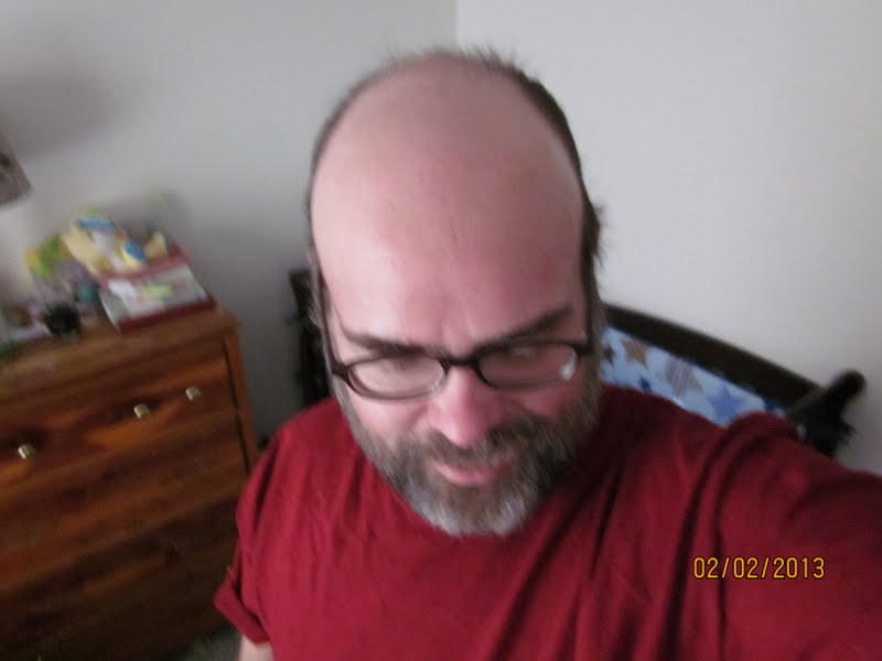 So glad the shaved head look is popular to allow the follicularly challenged an opportunity to look just fine.