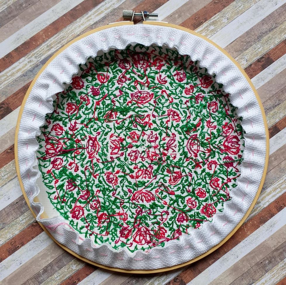 All The White Stitches Are Done, Now For The Climbing Roses And Objects In The Windows