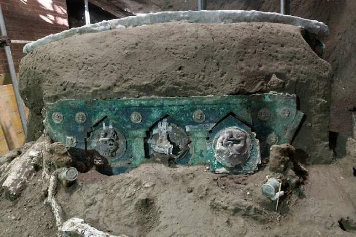 Roman chariot unearthed 'almost intact' near Pompeii.
