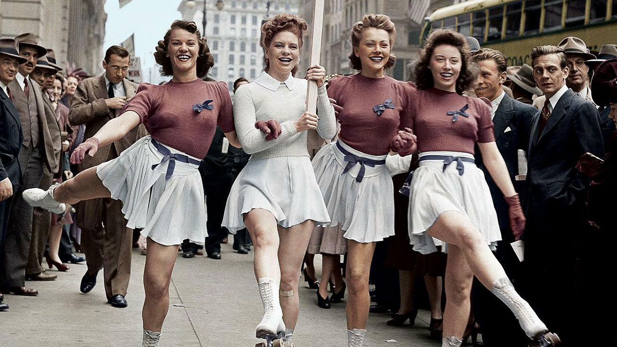 "Do Your Bit! Skate To Work" Women Of The Uso Promoting Gas Rationing During WWII. New York City, 1940s
