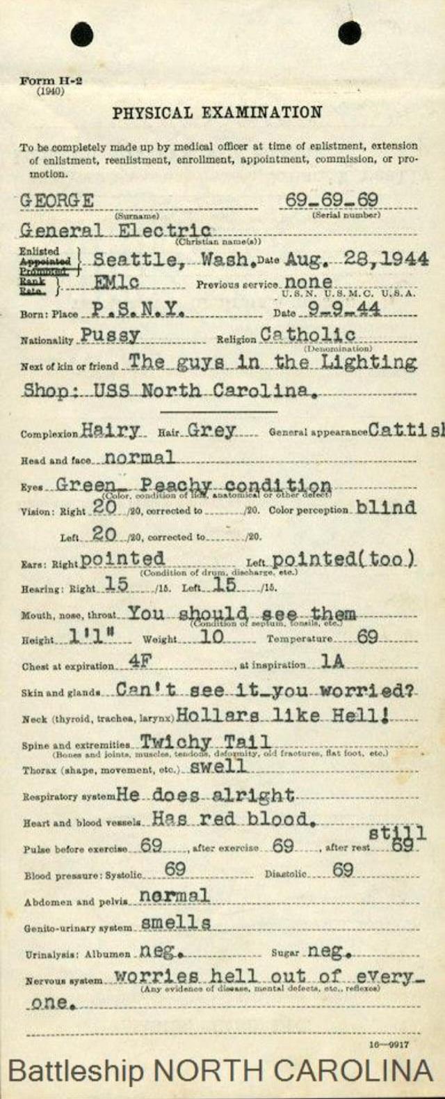 They left out the actual health form, which is effing hilarious. https://www.reddit.com/r/interestingasfuck/comments/17ca10g/this_health_report_for_a_kitten_that_the_us_navy/