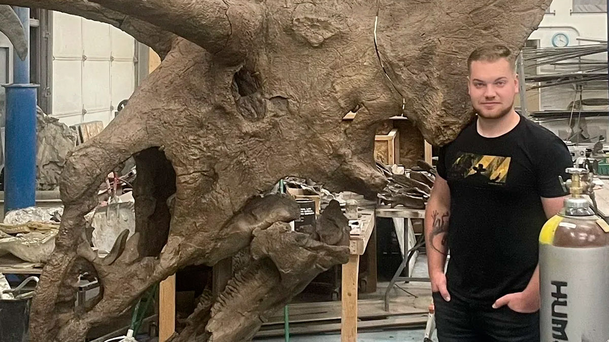 The Head Of A Liopleurodon To Scale With The Artist Who Made It, Bob Nicholls
