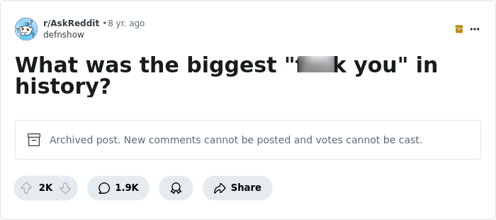 Someone asked “What was the biggest "[s***w] you" in history?” and netizens shared their best examples. So get comfortable as you read through, if you happen to have a nemesis, perhaps take some notes, upvote the best ones and be sure to add your own thoughts and favorites in the comments below.