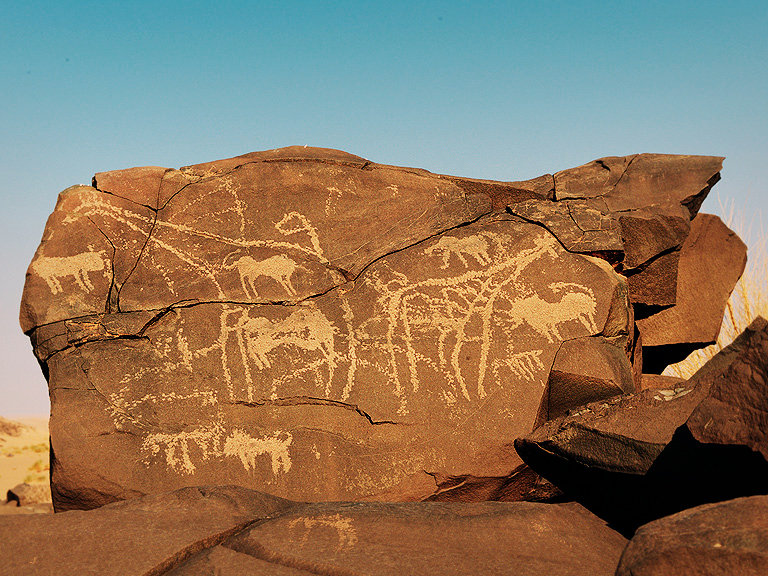 TIL there is 14-thousand-year-old rock art in the middle of the Sahara desert. The paintings show crocodiles, giraffes, and hippos, from a time when the Sahara was lush grassland and forest, and was able to support these animals.