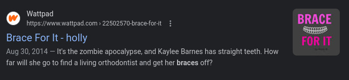 Ok... Start with 'Kid' arguing with Mom about even needing braces with Mom's reply along the lines of ... think about your future... (Kid has some seriously messed up teeth) Go through the months of tightenings... then the day to get them removed finally arrives... That's when apocalypse happens. ... Insert drama here... ... Somehow... the braces AND the straightened teeth are required to save the planet