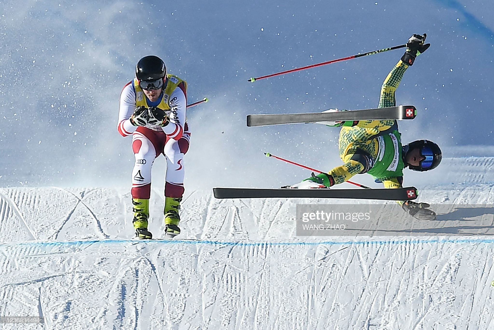 Alpine skiing is basically just, well... skiing. Down a snow-covered slope. On skis. There are certain types, such as slalom, giant slalom, and SUPER GIANT slalom. There's also cross-country skiing and ski cross, which are DIFFERENT things. See the picture below. Person on the right is a good example of ski cross. gettyimage...baf4e2.jpg