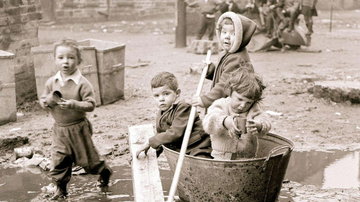 Kids playing in the mud, 1960s Glasgow.