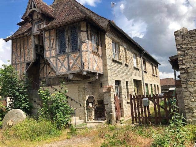 NOT A MEDIEVAL HOUSE it was built in 1955, as houses on this part of the street had been entirely destroyed in 1944, during WW2. The previous owner who lived there (Roland Chauvin, 1922-2016), a beloved saddle maker, he decorated the house with some horse gear, a reflection of his profession. Around 1960-70, he put the wheel in the front of the house which caught some attention, and someone made postcards with image of his house.