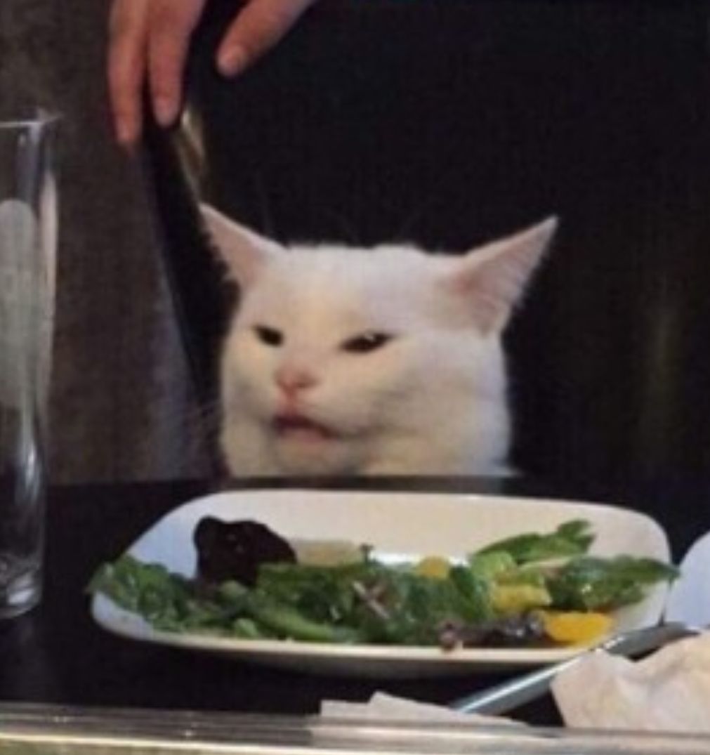 The designer either doesn't have a cat, or is a stout vegan. Or doesn't care if their cat messes with their food... Personally, I'm perfectly fine with a well-behaved cat sitting by the dinner table, but someone has to be able to gently push them down if they become too interested in the food.