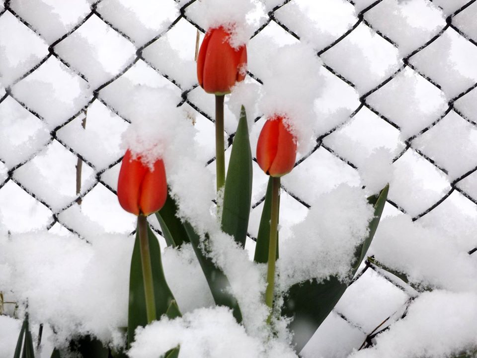 Tulips Blooming In The Snow