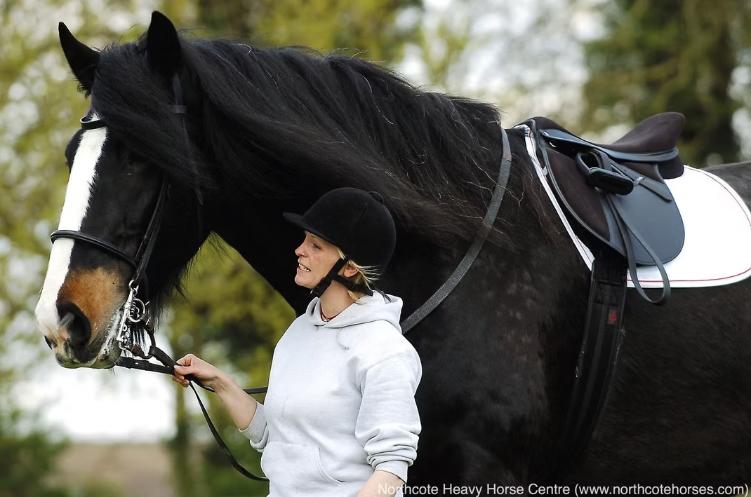 The image features Sampson, a Shire horse born in 1846 near Bedfordshire, England, who holds the record as the largest horse ever recorded. Size and Weight: At his peak, Sampson (also known as Mammoth) reached an astonishing height of 21.2½ hands (approximately 7 feet, 2.5 inches or 220 cm) and weighed a staggering 3,360 pounds (1,524 kg).