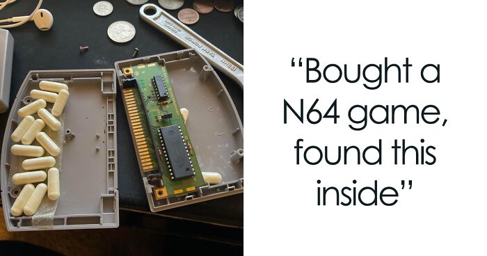 For those of you wondering, he was taking this game apart to use the back on his JP copy of Mario Kart so he could take it to a friend’s house with unmodded N64's. As to why he didn’t hear the pills loose shaking around, they were stuck to the sides with double-sided tape. You can see that in the image. The tape itself also looks old. He bought the game a year or so ago, but the game itself was made in the late 90s so who knows how long this has been sitting in there.