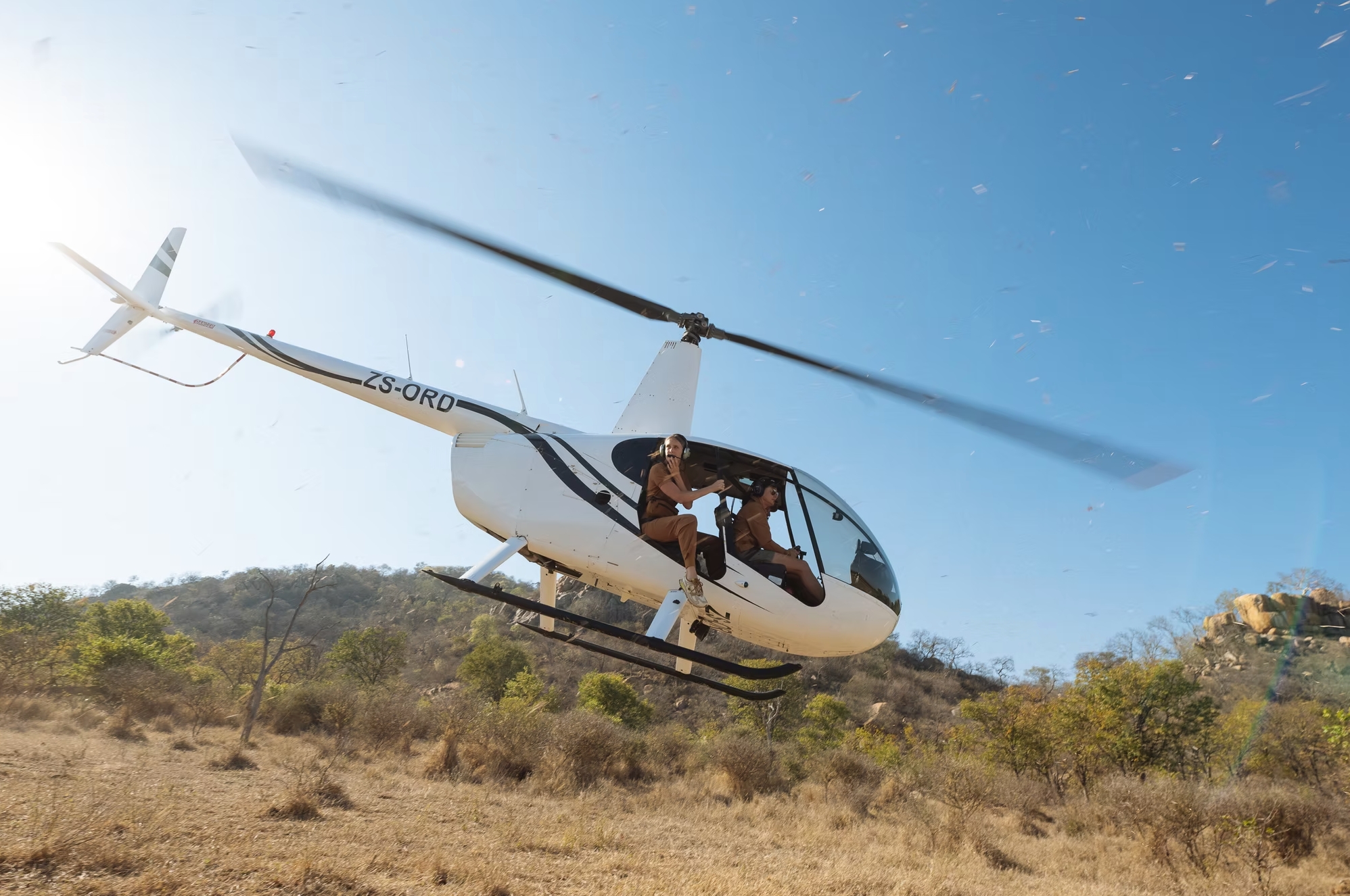 When your patient weighs more than a car and needs relocating across rugged terrain, sometimes the safest option is a literal airlift. After sedation, the rhino is carefully slung beneath a helicopter and flown to safety or to a new reserve.